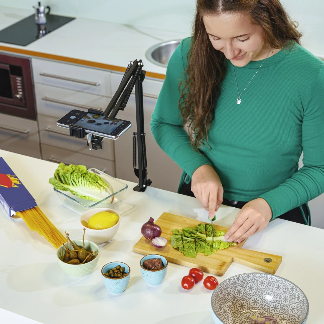 Dispensa adaptadores: com suporte flexível para telemóvel para fixação no braço articulado, para ângulos de captação invulgares e fotografias perfeitas em qualquer formato