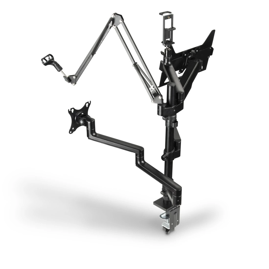 Perfeito para a próxima sessão de streaming ou jogo: quer seja webcam, microfone, smartphone ou tablet, anel de luz ou câmara, monitor ou portátil, há espaço para muito equipamento de streaming nos quatro braços, o que faz os corações dos bloggers, streamers, gamers, etc bater mais depressa