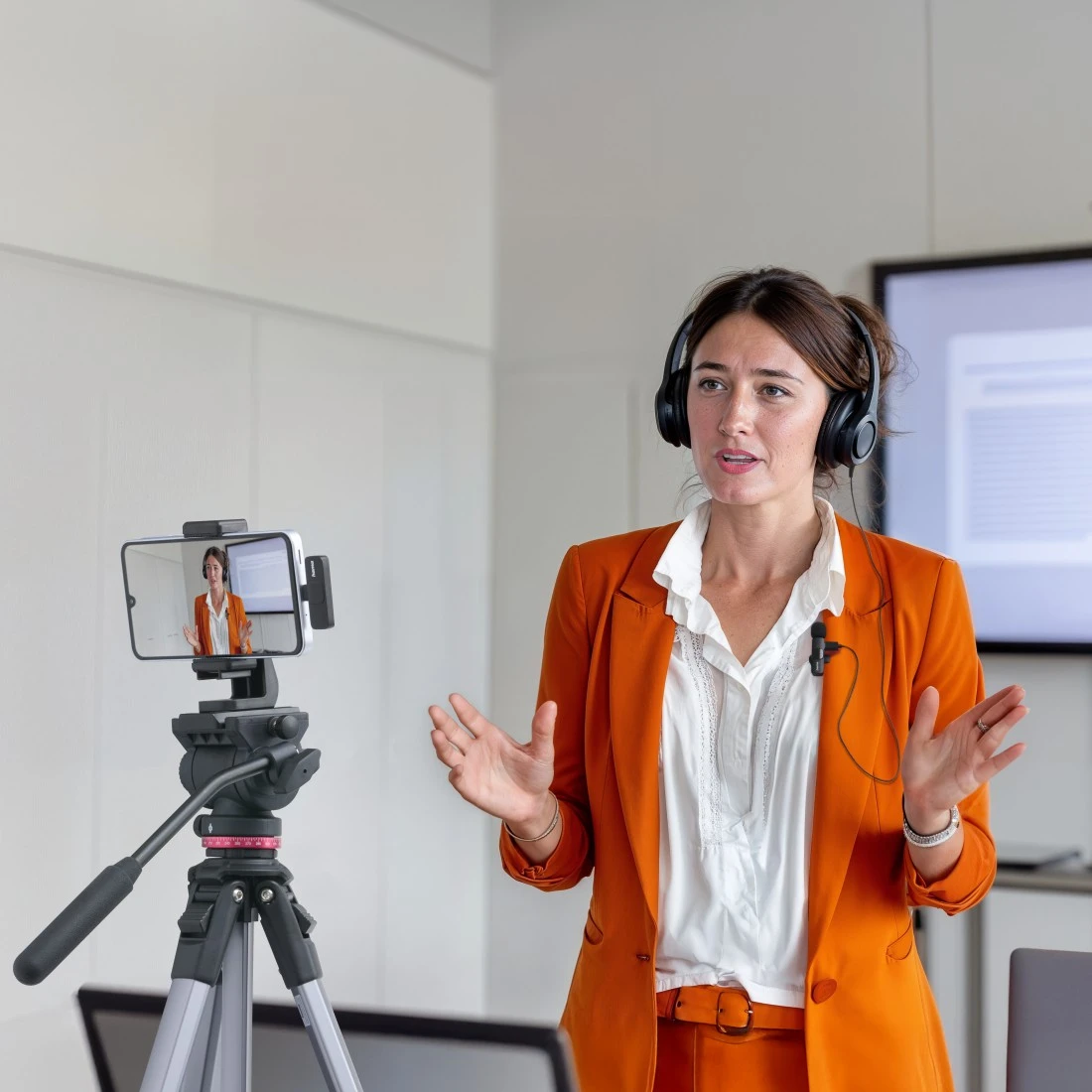 Mãos livres para gravar vídeos: Coloque o seu telemóvel ou tablet com recetor numa posição adequada ou estabilize-o com um tripé para lhe dar bastante liberdade de movimentos para vídeos dinâmicos