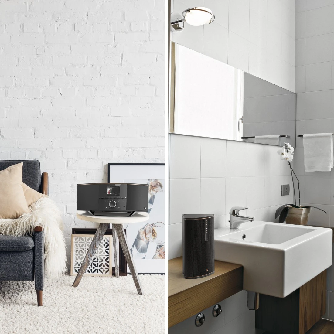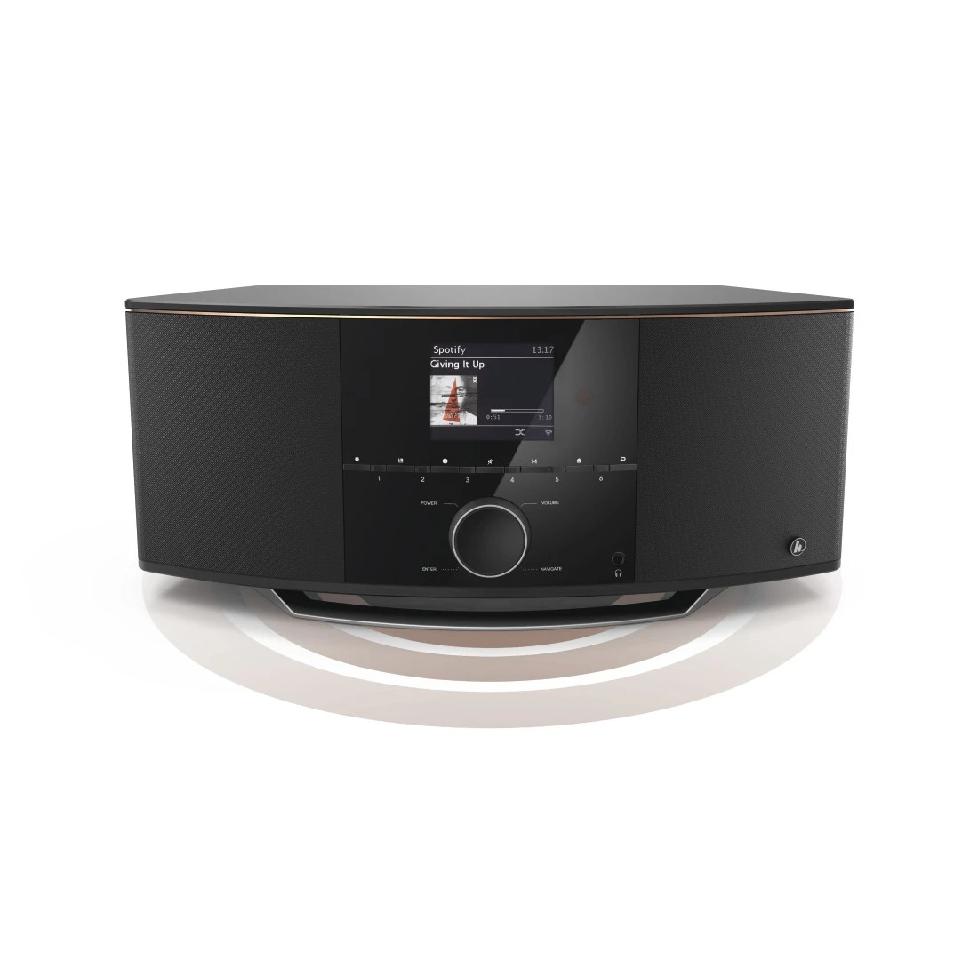 Graças à frequência de banda dupla de 2,4 GHz e 5 GHz, o rádio via Internet transmite e recebe sempre na melhor frequência disponível