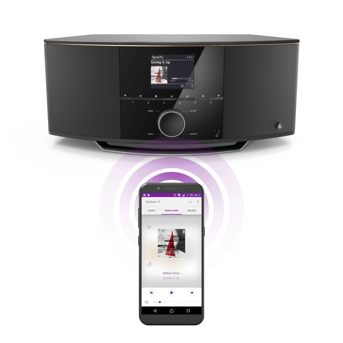 Ouça as suas músicas preferidas do Spotify no rádio: suporte de Spotify Connect para acesso a milhões de canções e às playlists já elaboradas