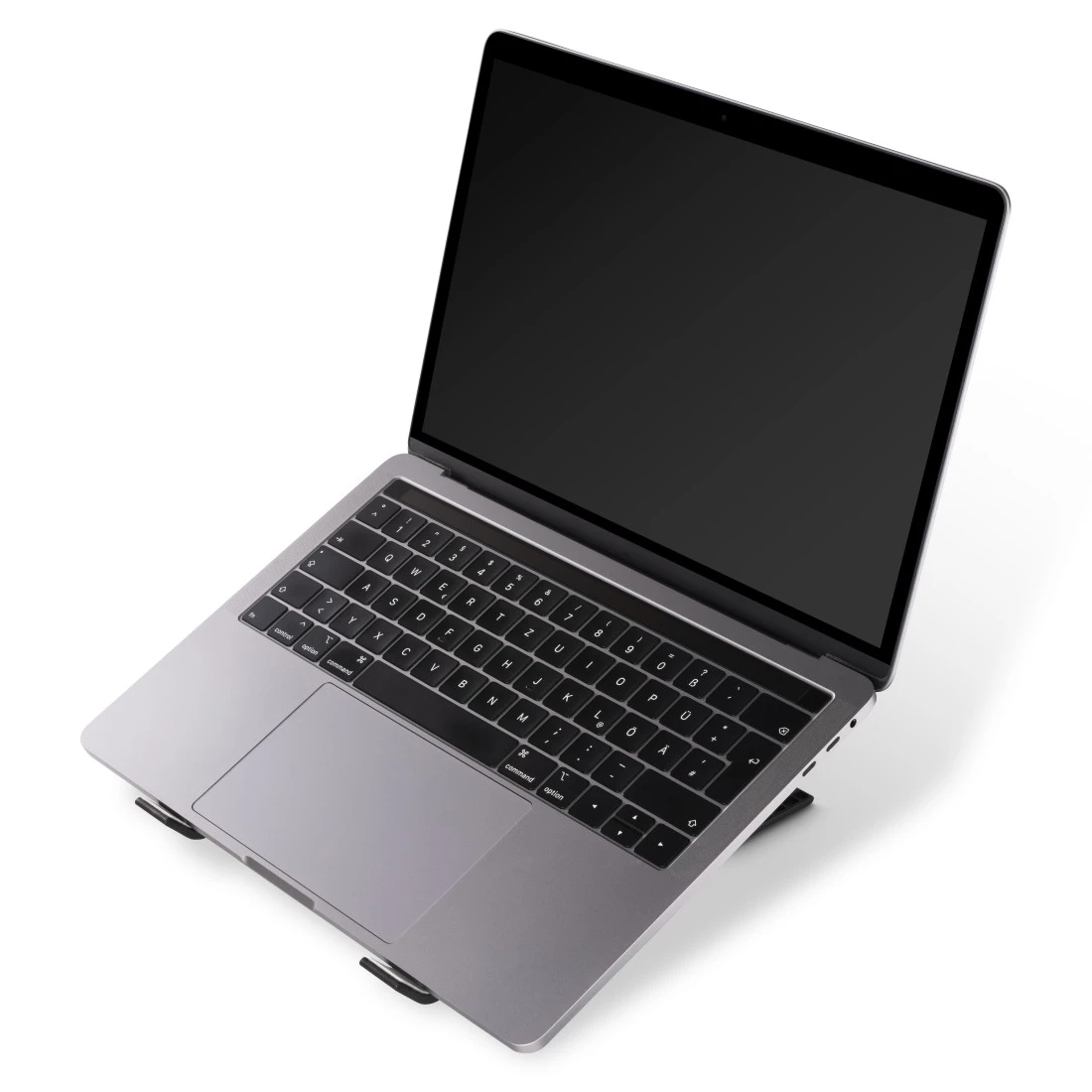 Ângulo de inclinação vertical com regulação flexível, ideal para o trabalho ergonómico no notebook em pé e sentado