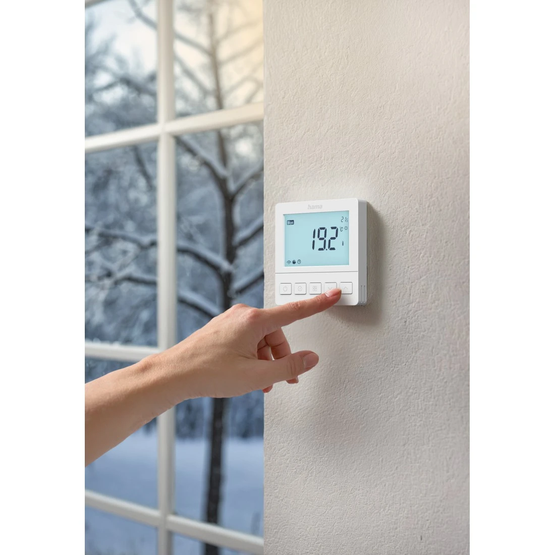 Em casa ou no comboio? Tanto faz: Com a app Hama Home e o termóstato ambiente, pode controlar o seu aquecimento por piso radiante a partir de qualquer lugar e a qualquer momento e alterar as definições em tempo real